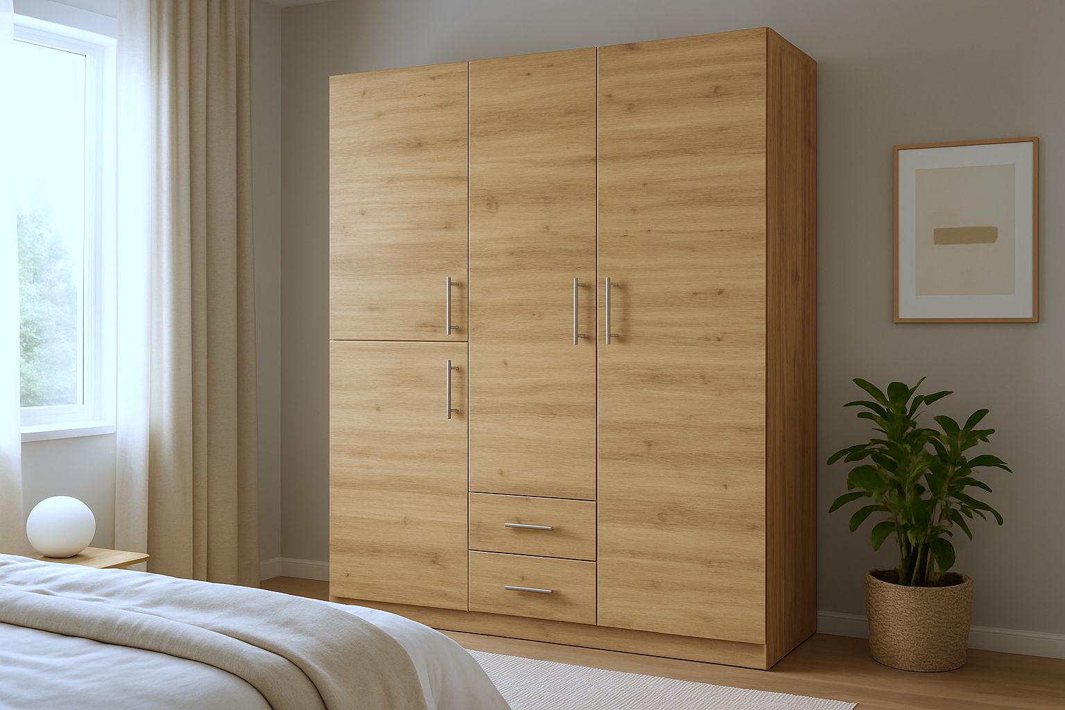 Szafa LIWIA to idealny wybór do Twojej garderoby, pokoju czy sypialni. Wykonana z wysokiej jakości płyty laminowanej. Praktyczne szuflady, półki oraz drążki na ubrania pomieszczą wiele rzeczy. Solidne wykonanie daje gwarancję trwałości, dzięki czemu szafa posłuży Ci przez wiele lat. Meble są pojemne i dostępne w różnych kolorach.