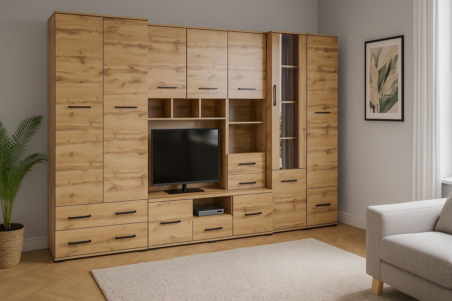 – meblościanka z wizualizacji wykonana w kolorze: artisan